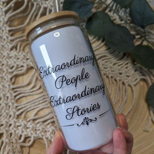 Celestial glitter brush feel 16oz glass cup or 17oz glass mug with bamboo lid and reusable plastic straw. Magical, mystical, beautiful woman