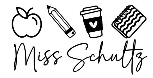 Personalised name teachers cute gift 16oz glass cup or 17oz glass mug with bamboo lid & reusable plastic straw. Apple coffee pencil notebook