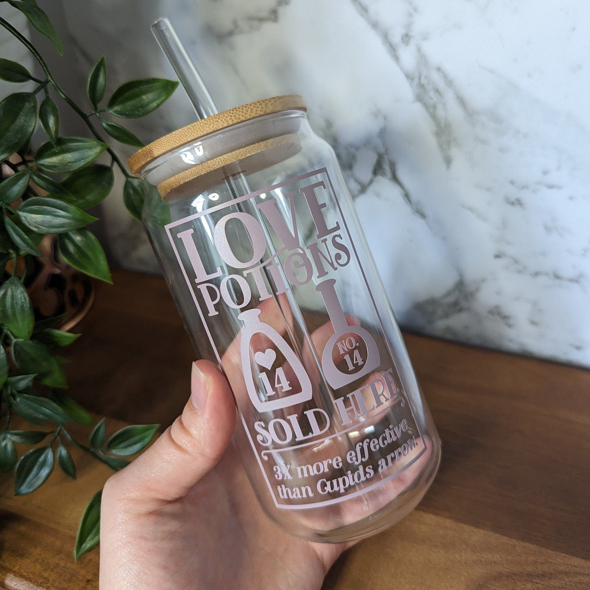 Iced coffee or love potion? Either way this love potion themed 16oz glass cup with bamboo lid & reusable straw will make it seem magical.
