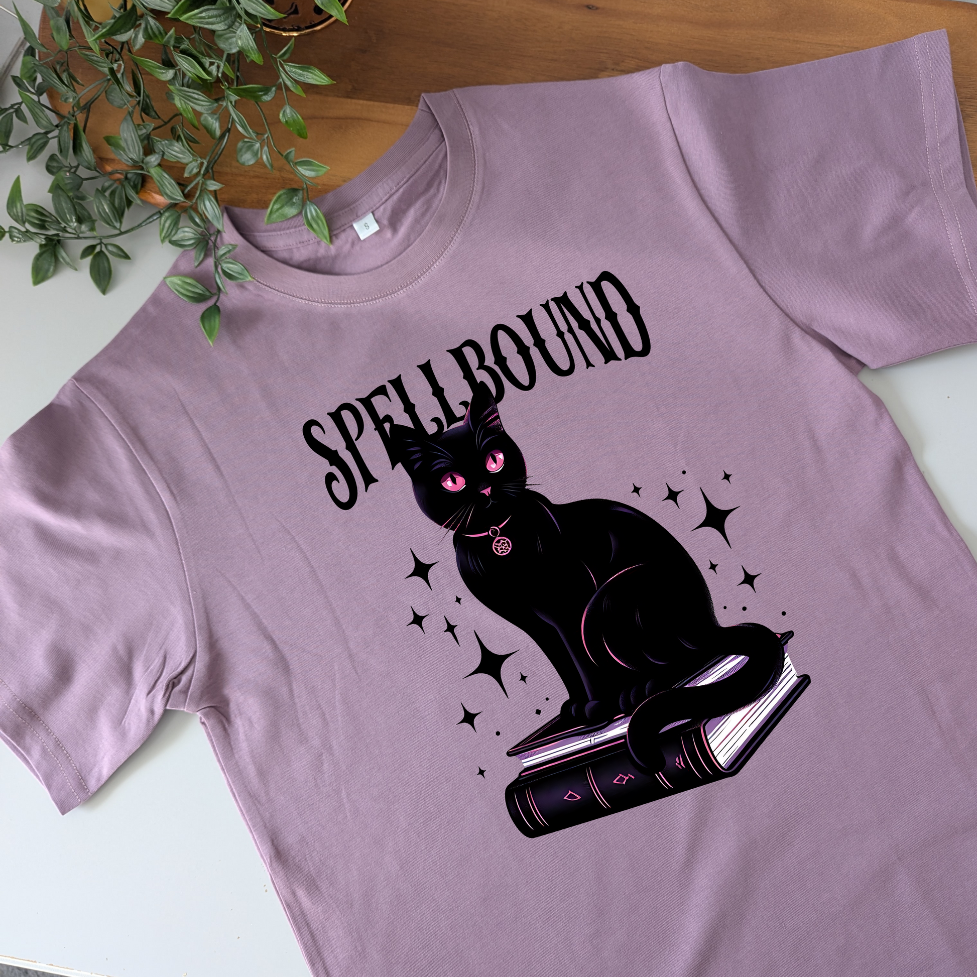 Get caught up casting spells your new spell book and kitty familiar with the Spellbound tshirt